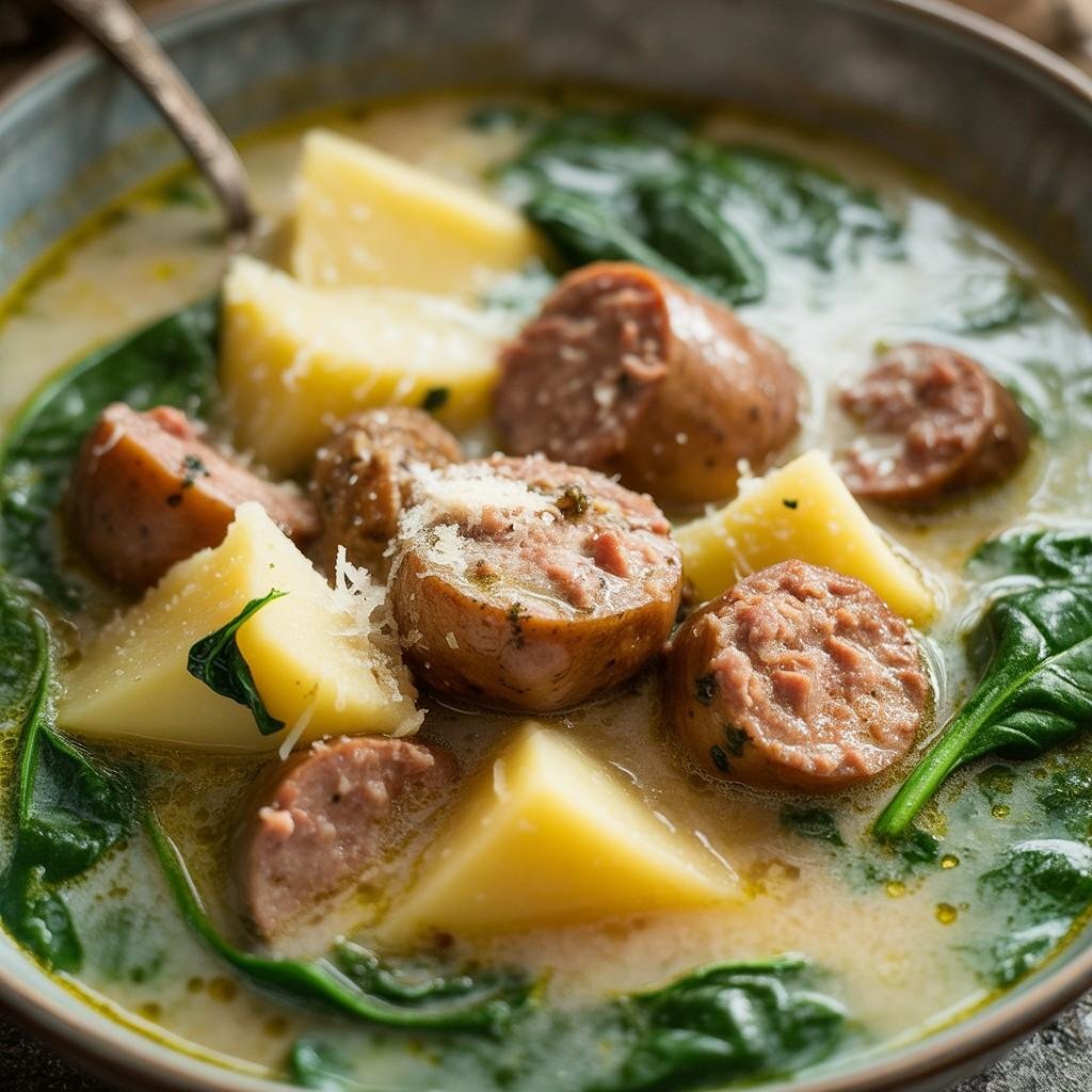 This creamy Italian sausage and potato soup is a hearty, comforting dish packed with rich flavor and satisfying texture. Savory Italian sausage is simmered with tender potatoes, aromatic vegetables, and a creamy broth that brings everything together. Finished with leafy greens and a touch of cream, this soup is warming, filling, and perfect for chilly nights or easy family dinners. It’s a one-pot meal that feels indulgent while still being simple to prepare.
