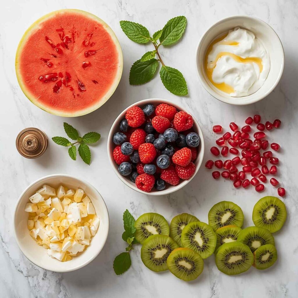 This Healthy Watermelon Fruit Pizza with Greek Yogurt is a vibrant, refreshing twist on traditional dessert pizza — perfect for warm days, picnics, brunches, or anytime you crave something sweet without heaviness. Juicy watermelon slices form the base, offering natural hydration and crisp, mouthwatering flavor. A creamy layer of Greek yogurt adds protein and subtle tang, while colorful fresh fruits and a drizzle of honey provide bursts of sweetness that feel both fun and nutritious. Every bite delivers a delightful balance of juicy fruit, cool creaminess, and a medley of textures that make this more than just a treat — it’s a feel-good food that feels as good as it tastes. Designed with fresh produce and minimal added sugar, this dish is easy to assemble and wonderfully crowd-pleasing. Whether you’re feeding kids, hosting guests, or looking for a healthy dessert, this watermelon pizza brings freshness and flavor in every bite.